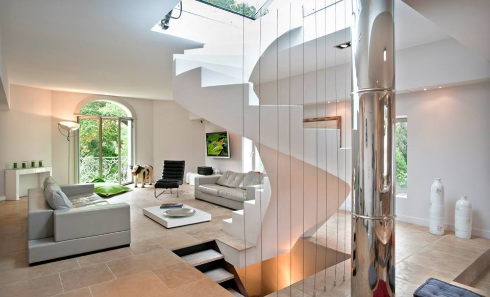 Le challenge technique outre celui de ne pas avoir de pilier central porteur (c’est-à-dire que nous avons un noyaux évidé), c’est que notre escalier n’est pas accroché à l’arrivée. Il est simplement en appuie vertical et non horizontal. Cet escalier ne fait pas tout à fait une révolution (un tour de 360°) , son centre de gravité est déporté, le tout avec un diamètre de noyau central de 300 m. L’ensemble du poids de l’escalier reposant entièrement sur son pied.