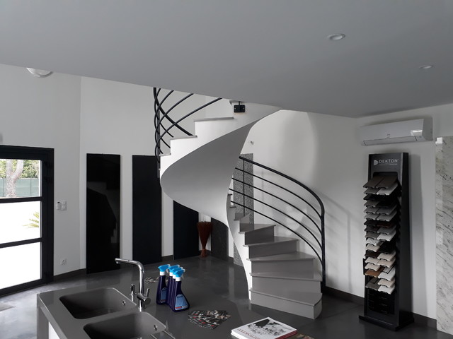 Escalier hélicoïdal dans un showroom d’une marbrerie